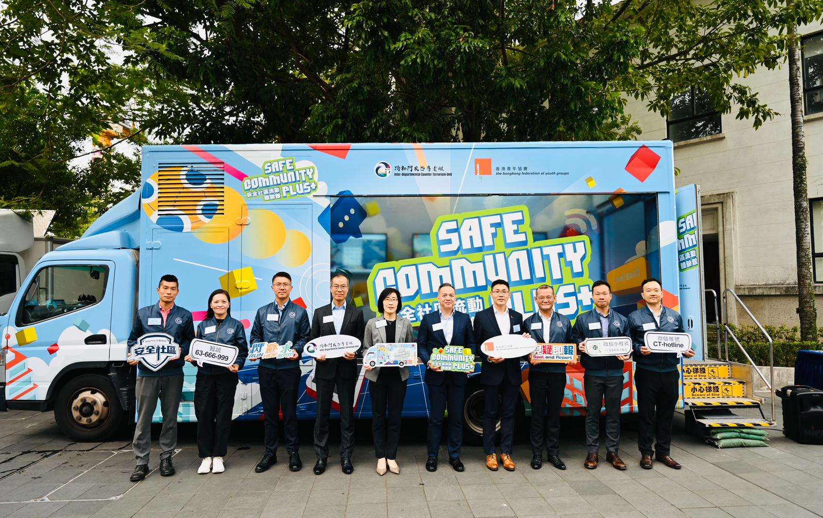 香港青年協會青年違法防治中心本年再獲香港警務處委託營運Safe Community Plus安全社區流動體驗館,未來半年體驗館將會走訪超過60個社區及學校不同地點,將安全社區的信息帶給市民。今日( 11月11日)在青年領袖學院舉行了啟動儀式,主禮嘉賓包括警務處處長周一鳴及本會總幹事徐小曼。